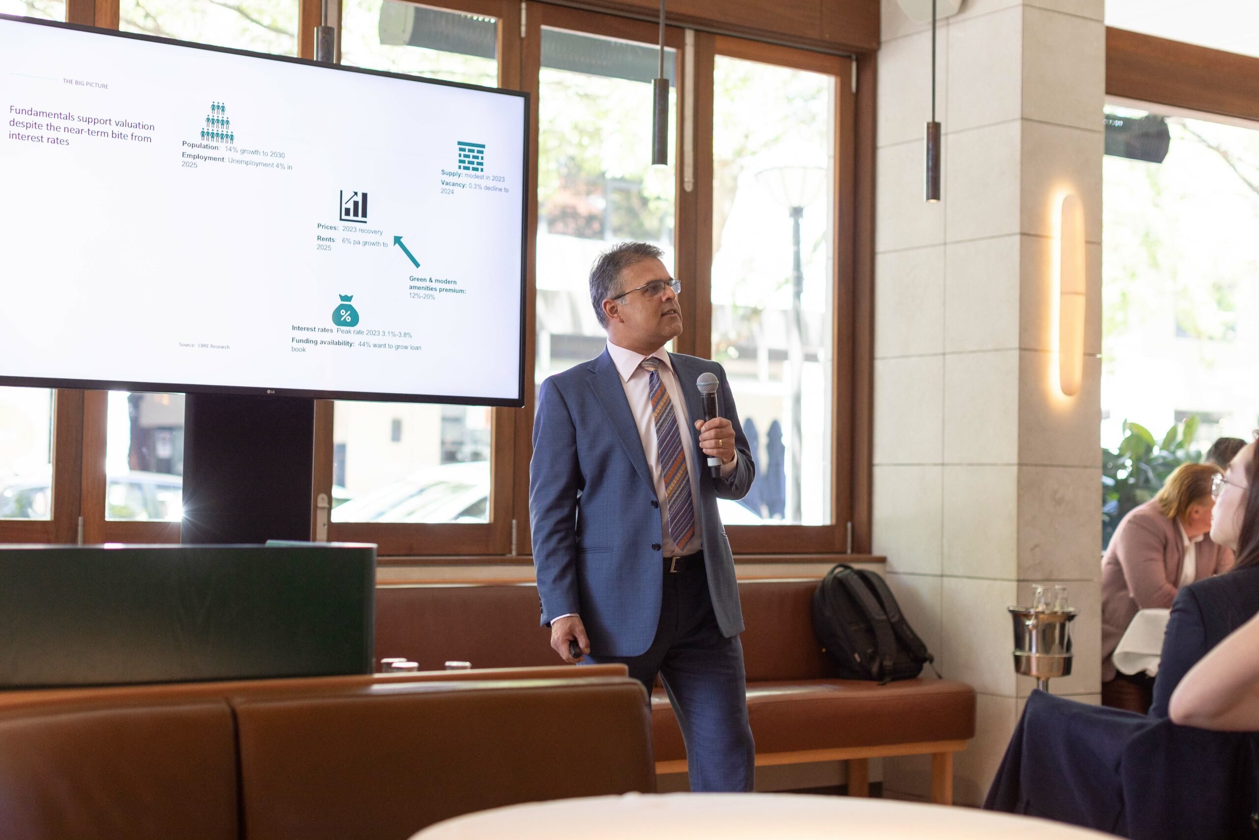 Guests heard from Director of Research at CBRE, Sameer Chopra, on the outlook for rent returns from migration, healthy occupier appetite and the ongoing shift to premium experiences. Pallas Capital’s Chief Investment Officer, Dan Gallen, also spoke alongside David Milton, Managing Director of CBRE Residential Projects, on the current state of the non-bank lending space, and why Pallas is uniquely positioned to keep growing its share of this lending market.